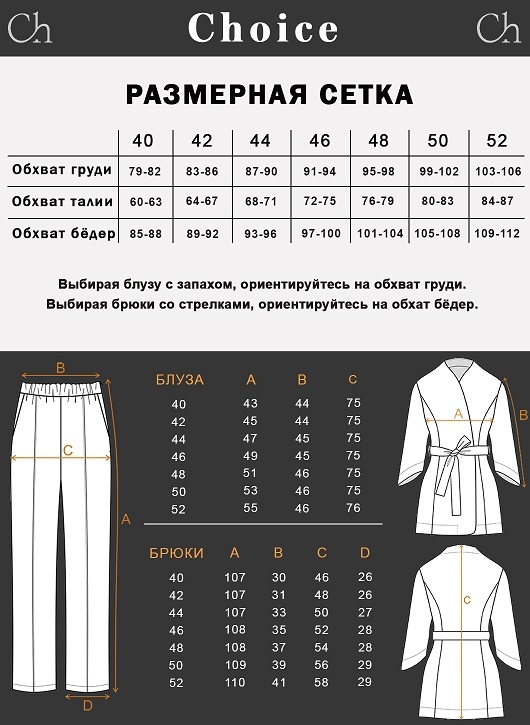 В комплект входят блуза с запахом и брюки со стрелками, элегантный костюм на любое время года станет отличным дополнением образа для врача и работника бьюти-индустрии.